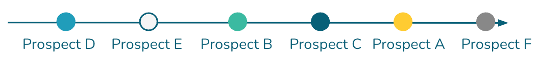 With these metrics in hand, I now have a means to systematically determine who to target and in what order. To do so, I generate a sequencing plot (simplified for the sake of this article):