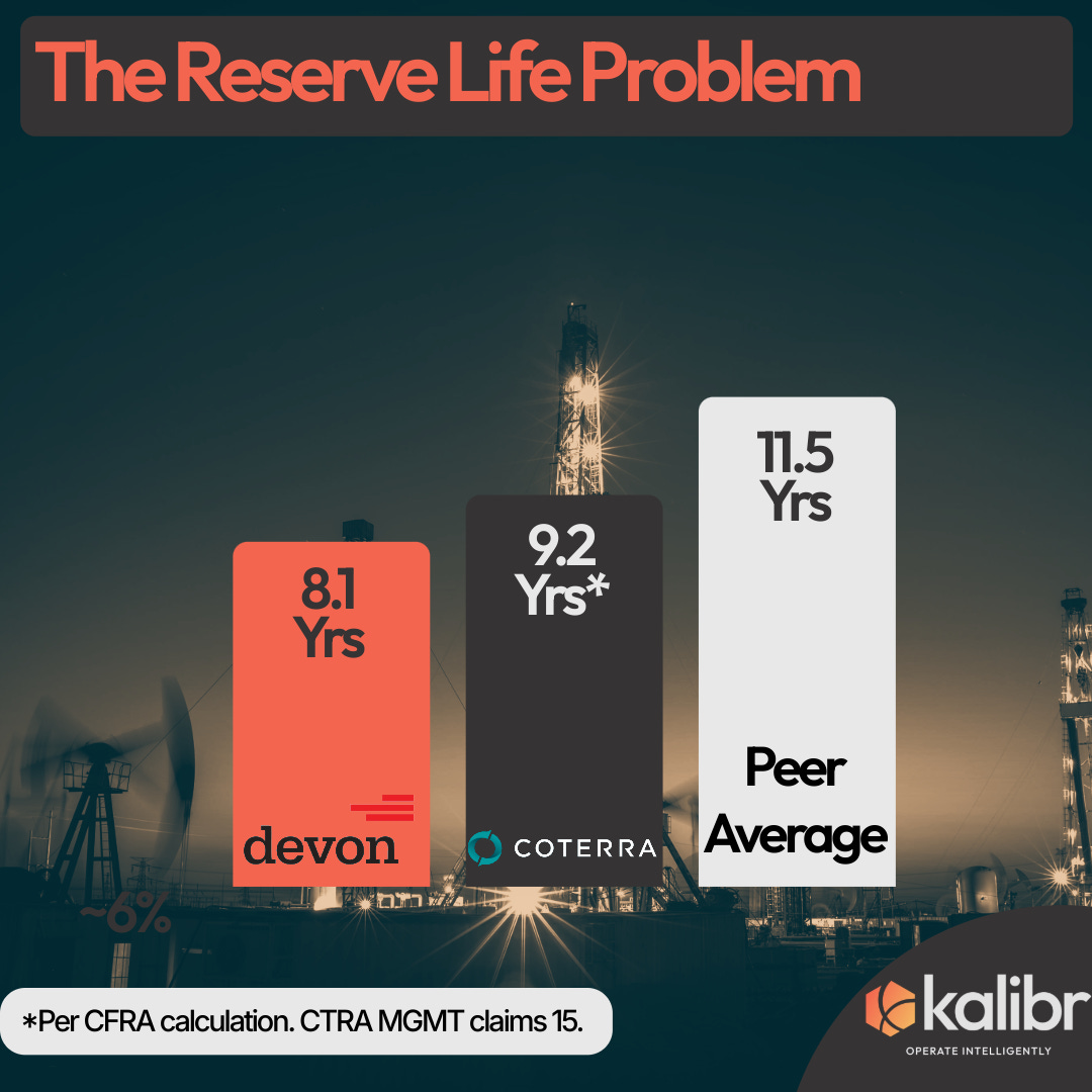 The numbers tell the story. Devon’s reserve life sits at 8.1 years. Peer average is 11.5 years. Coterra claims 15 years in investor decks, but most analysts calculate it at 9.2 years based on actual 2024 production levels.