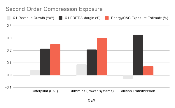Below is a chart summarizing Q1 2025 financials for the OEMs feeding your compression vendors: