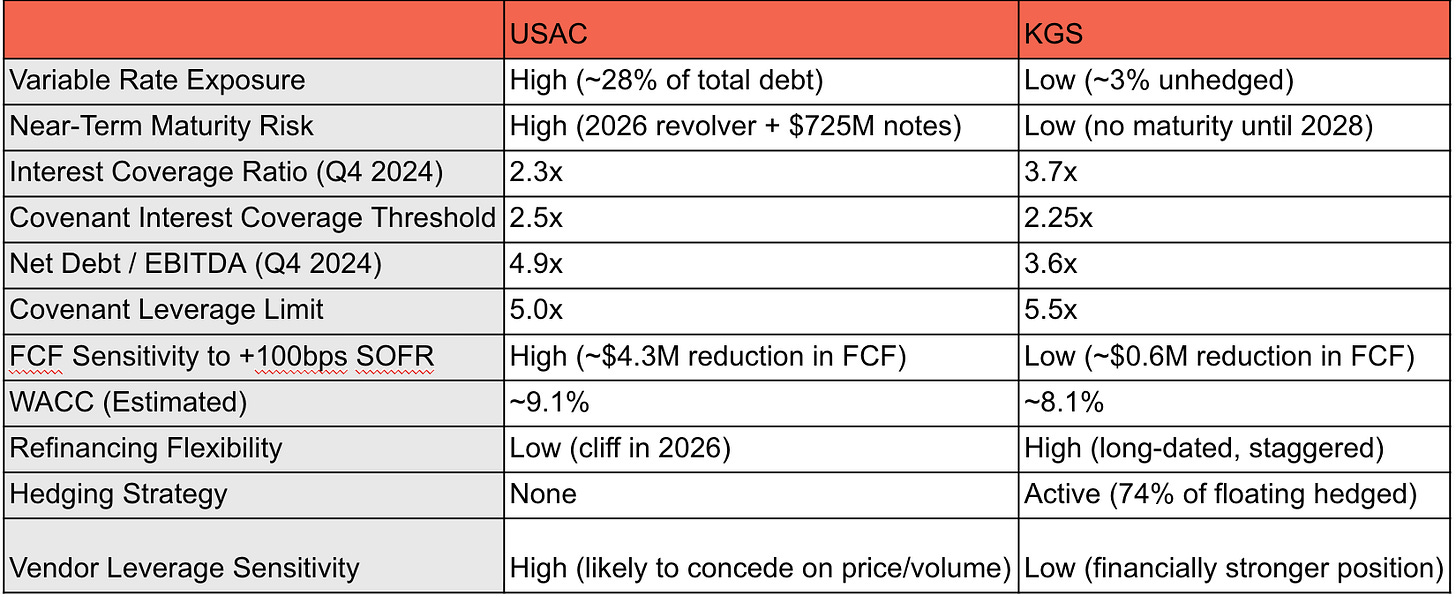 USAC: $2.3B in debt. Half floating. Refinancing cliffs ahead. SOFR rising means their FCF is getting squeezed. Warrants? The financial equivalent of “exposure therapy”—nostalgic but not useful.
