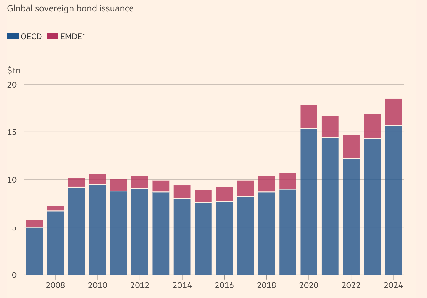 Private credit has ballooned to a $3 trillion market. LIBOR is gone; SOFR now ties your borrowing cost to Jerome Powell’s caffeine intake. Meanwhile, demand for sovereign debt is cooling, pushing term premiums higher. That means capital is getting more expensive—and more selective.
