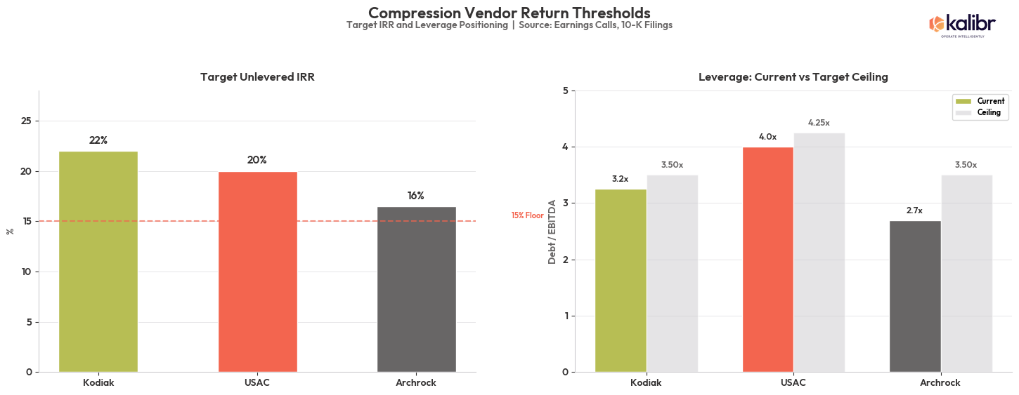 The practical starting point for all three is the same: model the occupancy floor. What utilization does your vendor need to service their debt at current rates, and how close are they to it? That calculation sets the realistic bands of negotiation, not what you want, but what the arithmetic will actually allow. The inputs are their cost basis, their WACC, their stated IRR targets, and their leverage structure. Archrock, USAC, and Kodiak publish most of this. What they do not publish is reconstructible from public filings. (This is what Kalibr’s market intelligence package is built around: the vendor-level economics that turn a renewal conversation from a negotiation about numbers into a negotiation about constraints.)