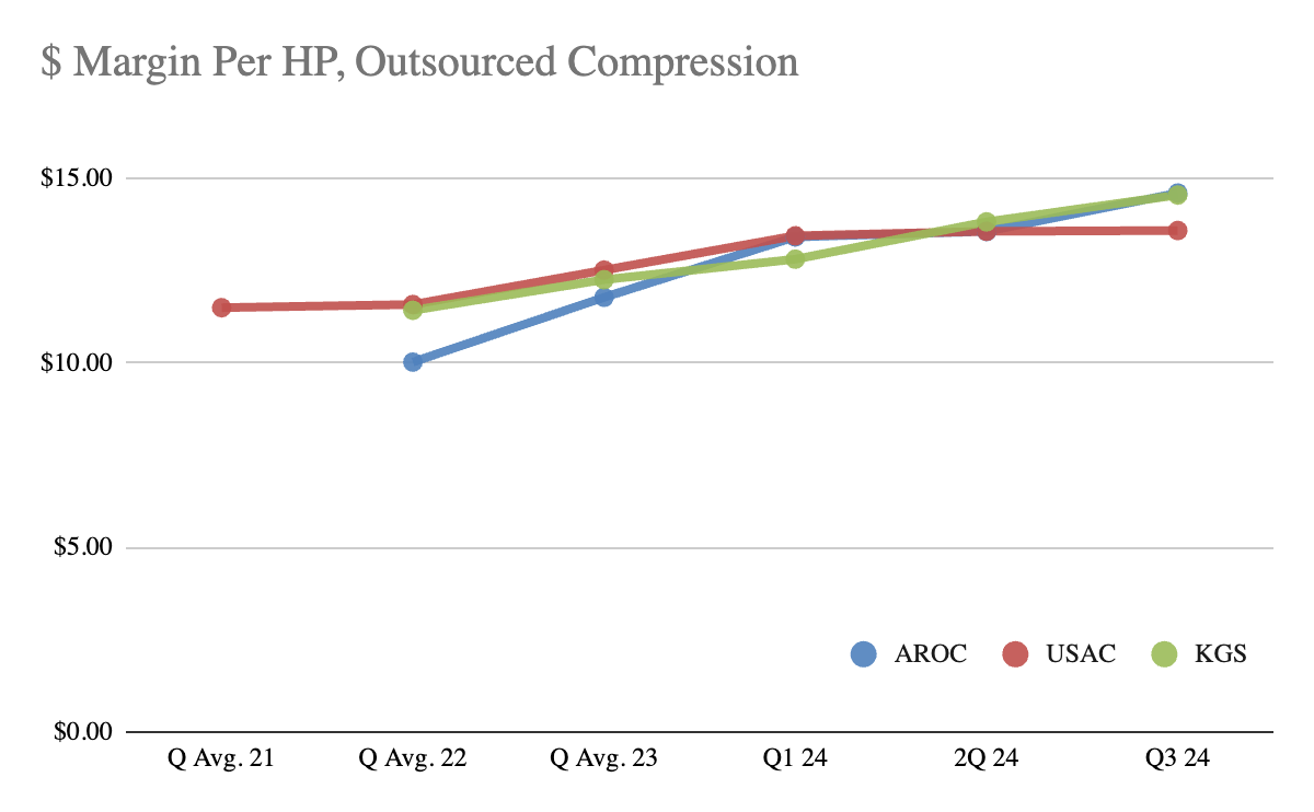Insourcing: KGS, USAC and AROC dominate the outsourced compression market, but it is estimated to capture 75% of the total market. Therefore, there is significant discussion on insourcing pressure on the earnings calls and within the 10K.