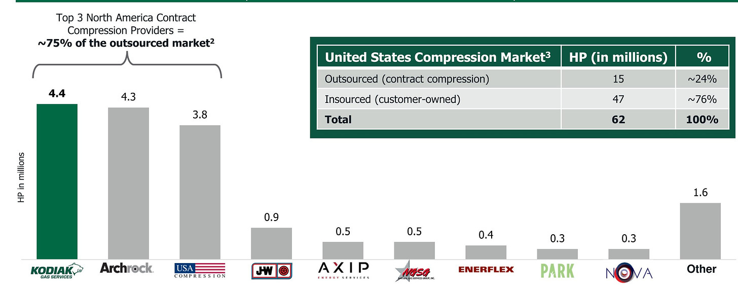 Enter the public compression companies: Archrock (AROC), USA Compression Partners (USAC), and Kodiak Gas Services (KGS). These firms, which control 75% of the outsourced compression market, are clear leaders in margin expansion within the OFS space.