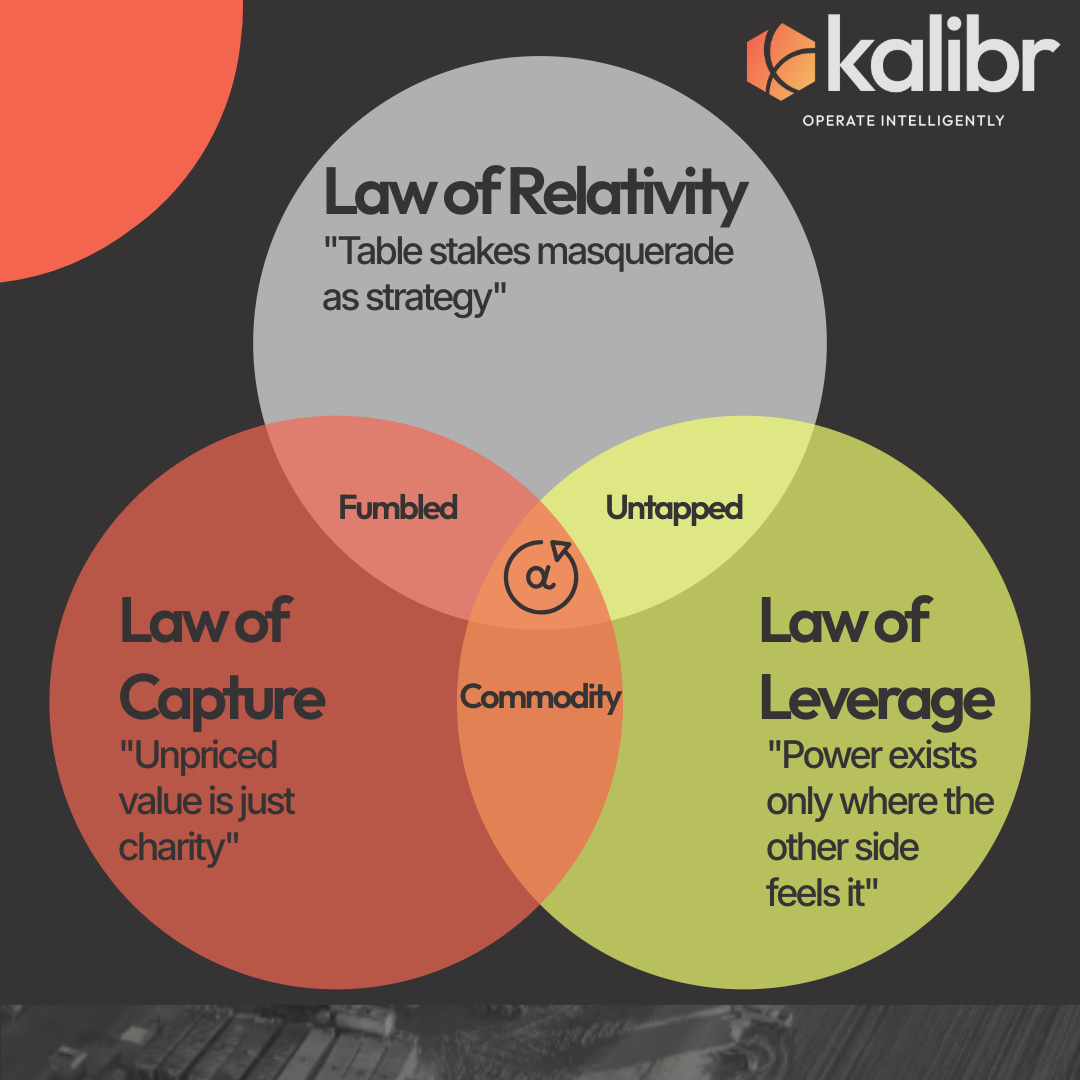 Kalibr does the opposite. We take the same raw inputs and run them through Relativity, Leverage, and Capture until they become something no one else can copy: your advantage, wired to their incentives, locked into the paper.